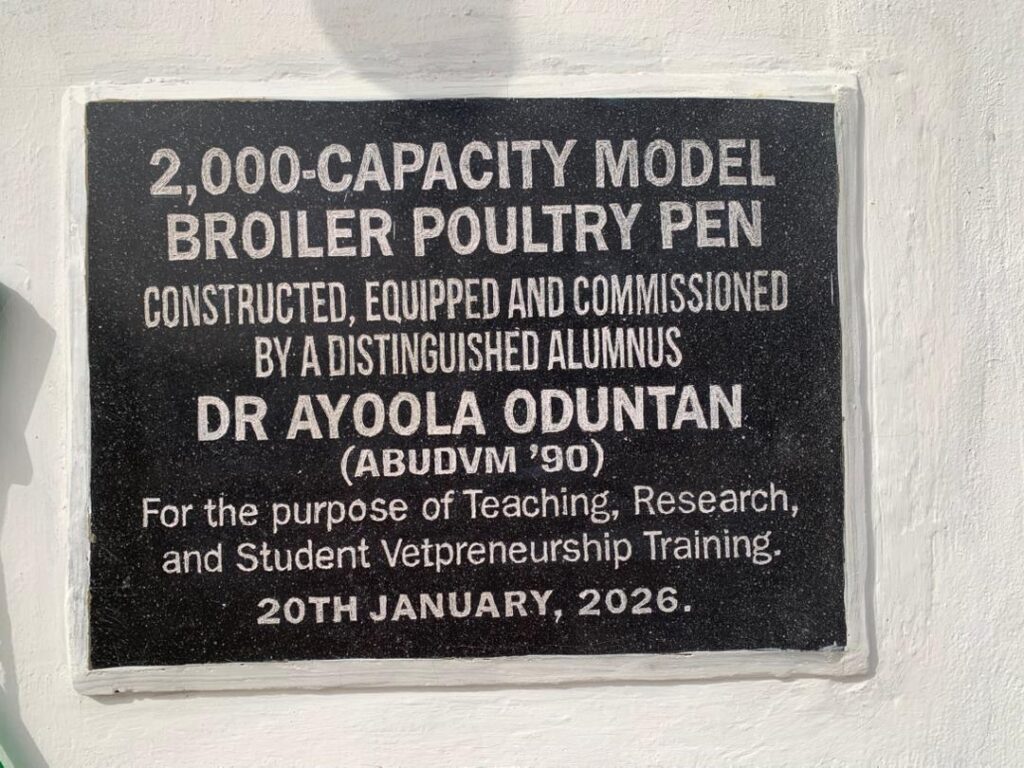 On January 20, 2026, our Group Managing Director, Dr. Ayoola Oduntan, donated a 2,000 capacity Model Broiler Poultry Pen Complex to the Faculty of Veterinary Medicine, Ahmadu Bello University (ABU), Zaria.